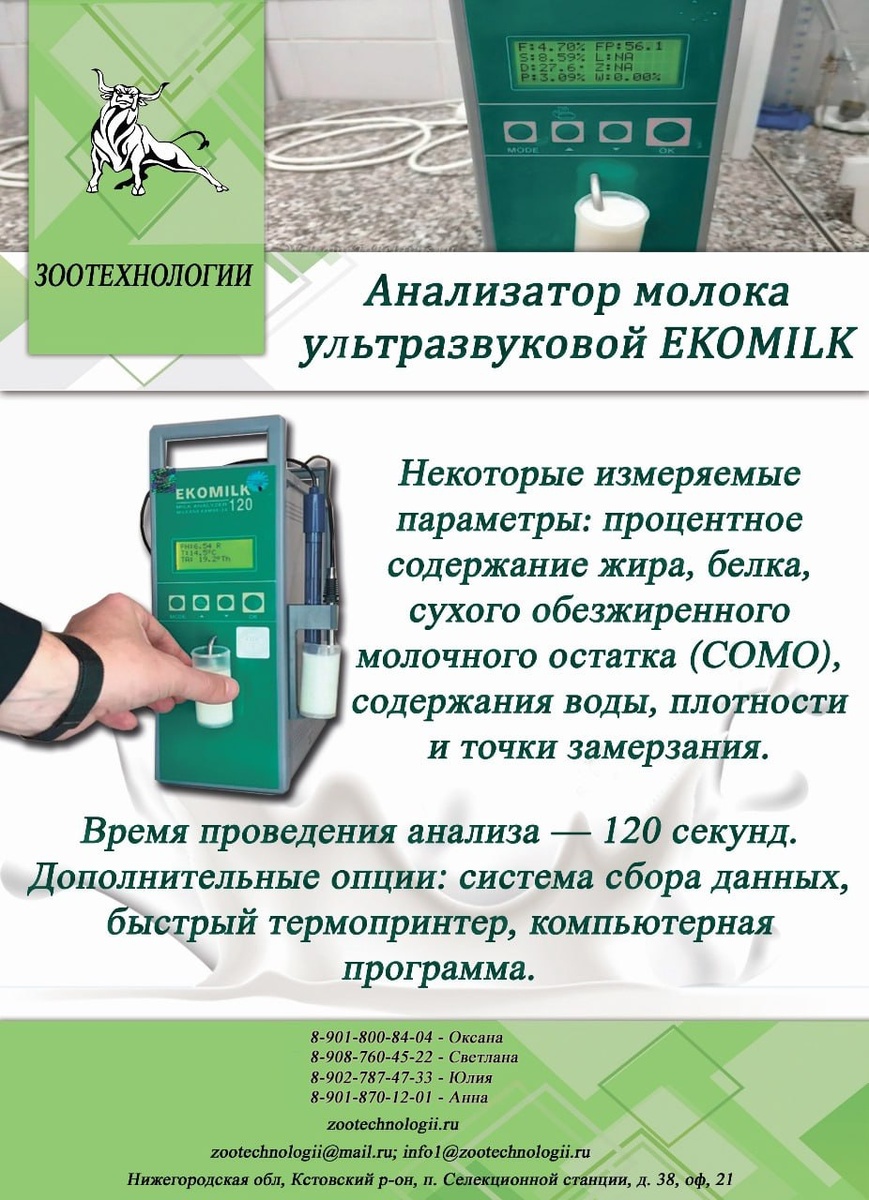 Добрый день. 📈 В продаже анализатор молока «Экомилк» с определением 6 параметров, который предназначен для контроля качества молока. Прибор позволяет измерять такие показатели, как жир, белок, сухой обезжиренный молочный остаток (СОМО), добавленная вода, плотность и точка замерзания молока. ✨ Анализатор используется в заводских и ветеринарных лабораториях, приёмных пунктах, мини-заводах и молочных фермах. Также прибор может применяться для контроля параметров технологических молочных смесей, которые не содержат сахара и солей (хлорида натрия, хлорида кальция и др.). Оставить заявку можно у наших менеджеров: Оксана: 8-901-800-84-04 Светлана : 8-908-760-45-22 Анна: 8-901-870-12-01 Юлия: 8-902-787-47-33 Смотрите нас на Rutube✅ #Анализатор_молока #КРС