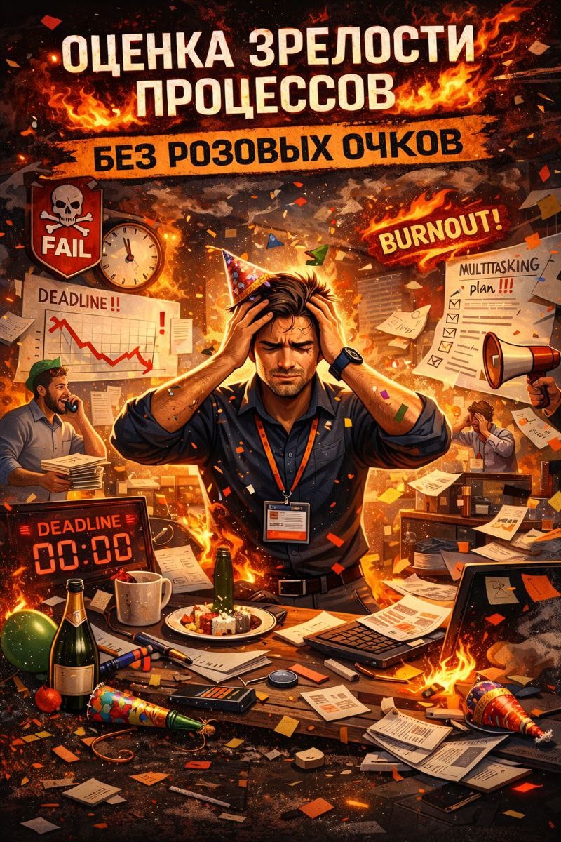 Всем успешной доставки! Надеюсь все отлично отдохнули и сейчас планируете себе задачи/цели на новый год. Кажется сейчас самое время, чтобы провести анализ ваших процессов, в каком состоянии они у вас сейчас и нужно ли что-то улучшать? Часто слышу вопрос: "Почему одни проекты успешно завершаются в срок, а другие постоянно сталкиваются с проблемами?" Один из факторов - это степень зрелости процессов в команде. Понимание текущего уровня зрелости позволяет целенаправленно развивать команду/компанию и добиваться устойчивого роста. 📌 Зачем вообще оценивать зрелость? Чтобы: -понять, где у вас реально узкие места, а не «ощущения», -увидеть, какие практики работают, а какие существуют «для галочки», -перестать лечить симптомы и начать работать с причинами. Оценка зрелости даёт понимание сильных сторон и зон для улучшения. Она помогает увидеть, какие процессы нуждаются в доработке, какие метрики недостаточно объективны, и какие технологии ограничивают потенциал команды. 🔍 Что значит реальн
