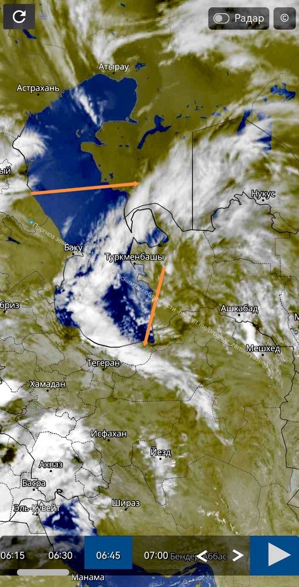 Лучше бы это оказался хвост циклона над северным Каспием (фото 4), а не интерпретация на фото 3.