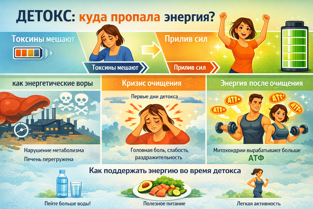 Многие замечают парадокс: после детокса вместо обещанного прилива сил чувствуют усталость. Другие же, наоборот, отмечают небывалую энергию. Почему так происходит? Связь между очищением организма и энергетическим уровнем сложнее, чем кажется.