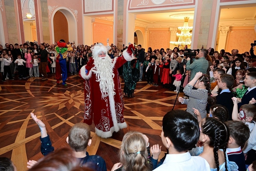 «По доброй традиции мы собираем вас, чтобы поздравить с Новым годом. Прежде всего, обращаюсь к нашим детям – вы самые лучшие, самые красивые, самые умные и самые сильные. Желаю вам крепкого здоровья, чтобы недуги вас не беспокоили, чтобы вы хорошо учились и слушались родителей. Чтобы в вашей жизни все получилось так, как вы мечтаете, – сказал Радий Хабиров. – Слова благодарности и уважения хочу сказать родителям. Вы – большие молодцы! Также сегодня в зале есть семьи, в которых папы и мужья находятся на передовой. Мы верим, что они выполнят поставленные задачи и вернутся домой живыми и здоровыми. Передайте им от меня добрые пожелания с Новым годом».