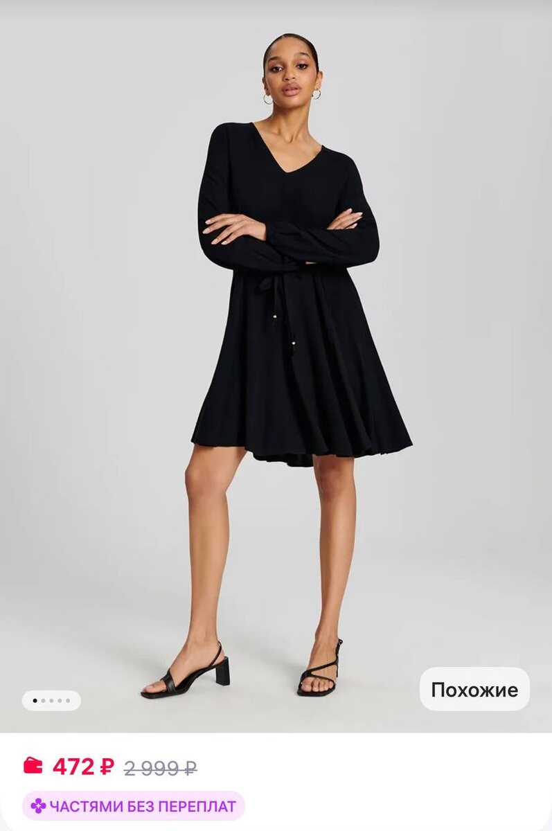 🫨😦😄 СИН Sinsay Платье до колена с поясом и V-образным вырезом