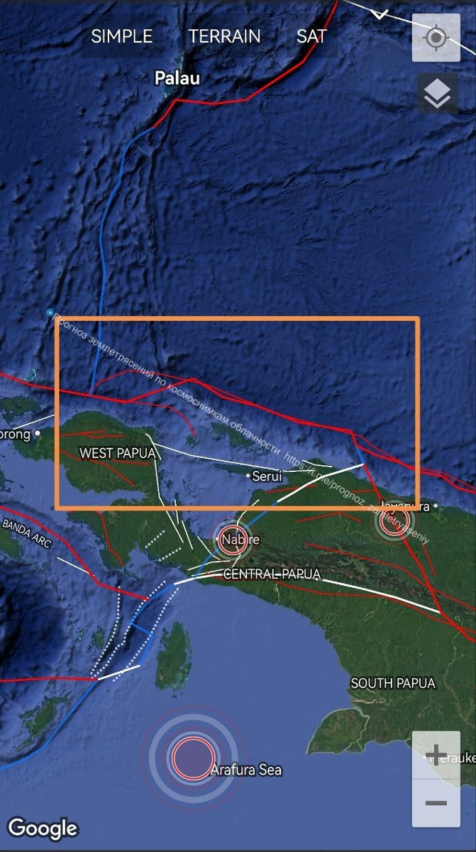 По северу Папуа есть вероятность М5.7+ а течение 8 дней