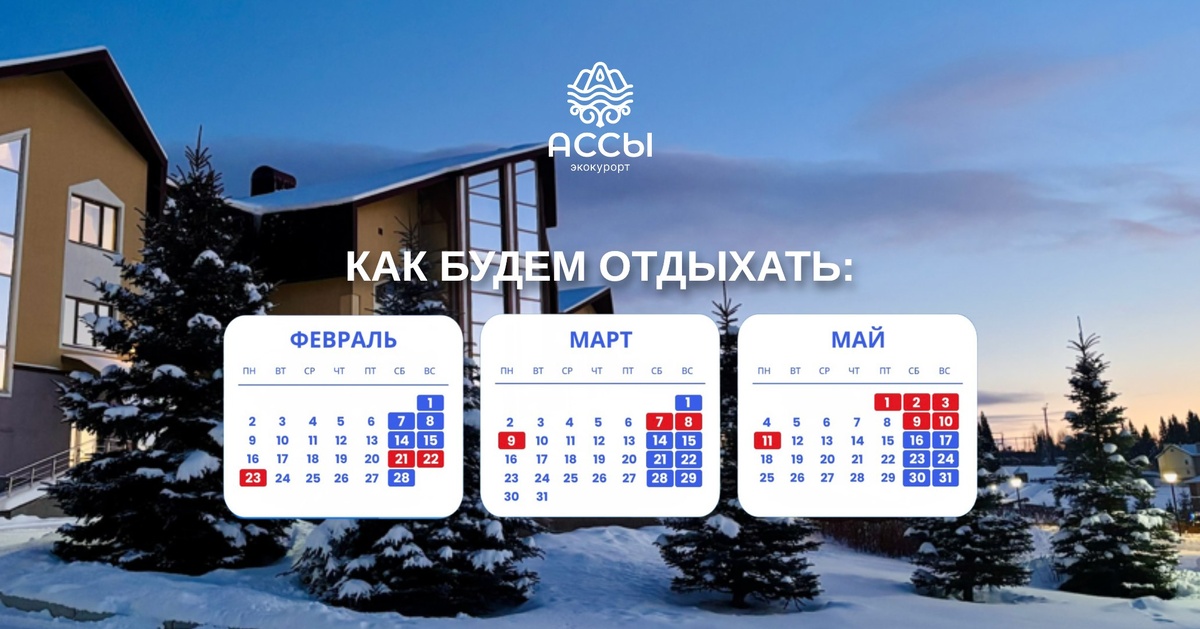 Впереди ещё много поводов выбраться из города и перезагрузиться на природе. До лета нас ждёт целая серия длинных выходных - самое время планировать поездки к нам! Приезжайте в «Ассы» на выходные и праздники - мы всегда рады гостям. 🗓️ Как будем отдыхать вместе: ✅ День защитника Отечества - с 21 по 23 февраля (3 дня уюта, гор и тишины); ✅ Международный женский день - с 7 по 9 марта (весна начинается в «Ассах»); ✅ Праздник труда - с 1 по 3 мая (идеально для прогулок и восстановления); ✅ День Победы - с 9 по 11 мая (спокойный отдых и свежий горный воздух). Ждем вас в любое время года! 👉🏻 Сохраняйте, делитесь с друзьями и планируйте полезный отдых вместе