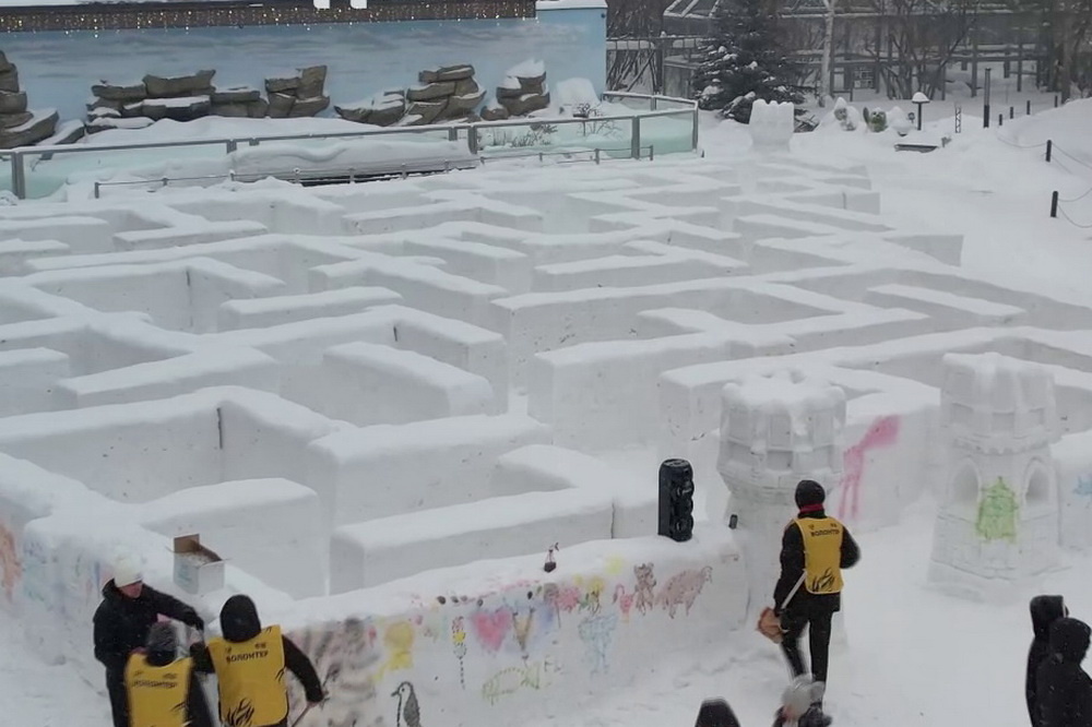Попробуй выбраться: снежный лабиринт соорудили в Новосибирском зоопарке