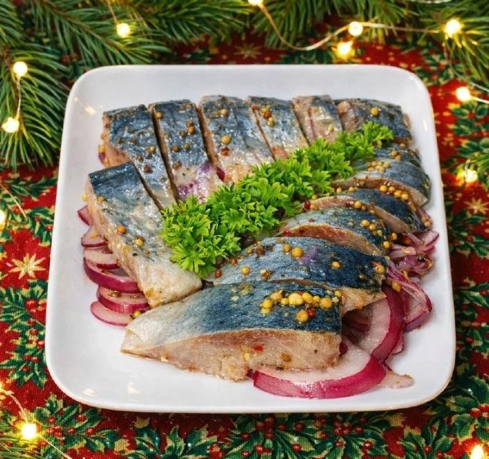 ИНГРЕДИЕНТЫ: ✅ Сельдь свежая — 2 шт. ✅ Соль — 1 ст. л. ✅ Сахар — 1 ч. л. ✅ Сок лимона — 1 ст. л. ✅ Горчица французская — 2 ст. л. ✅ Горчица русская — 1 ч. л. ✅ Смесь перцев — 0,5 ч. л. ✅ Кориандр молотый — 0,5 ч. л. ✅ Уксус яблочный — 2 ст. л. ✅ Вода холодная кипячёная — 2–3 ст. л. ✅ Растительное масло — 100 мл ✅ Лук репчатый — 1–2 шт. ПРИГОТОВЛЕНИЕ: 1. Сельдь тщательно вымыть, удалить голову, внутренности, кожу и кости. Разделать на филе. 2. Филе сельди нарезать порционными кусочками. 3. В миске соединить соль, сахар, французскую и русскую горчицу, смесь перцев, кориандр. 4. Добавить яблочный уксус, сок лимона, холодную воду и растительное масло. Тщательно перемешать до однородности. 5. Лук нарезать полукольцами. 6. В контейнер или банку выложить слоями сельдь и лук. 7. Залить приготовленным маринадом, чтобы он полностью покрыл рыбу. 8. Закрыть крышкой и убрать в холодильник на 12 часов. 9. Перед подачей аккуратно перемешать, по желанию украсить свежей зеленью. СОВЕТЫ: ✅ Д