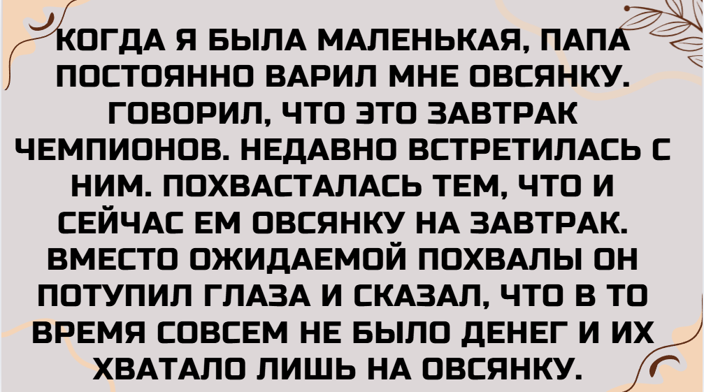 - Обожали с сестрой играть «во взрослых». Я ей говорила: «Ты не зарабатываешь!» Она парировала: «Если бы ты не давила, я бы зарабатывал больше!» Однажды «ссору» услышали родители. Произошло то, чего мы никак не могли ожидать. Ведь после этого они что-то переосмыслили и больше ссор в нашем доме не было.