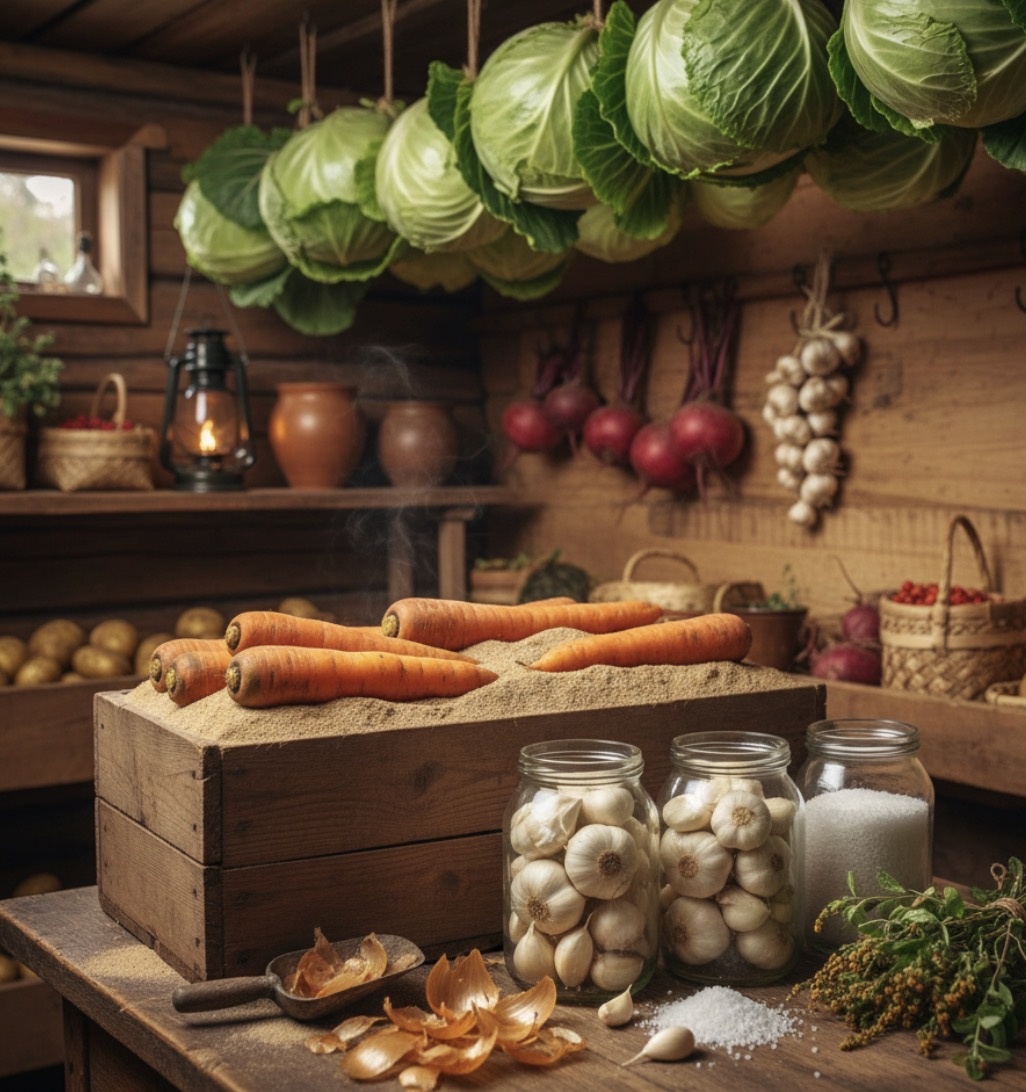В условиях Севера мы не можем просто сходить в огород в любое время года. Наша задача — сохранить всё, что выросло за короткое лето, до самой капели. За века жизни в деревне мы выработали систему, которая работает лучше любых современных контейнеров.