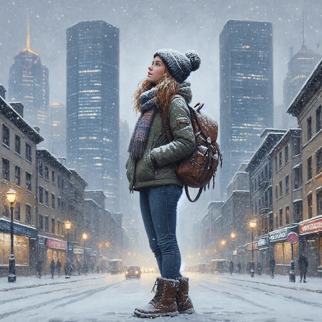 Я вышла из красивого подъезда на улицу под небольшой снегопад и стала глазами искать машину водителя среди высоток. Но самое удивительное, что, повернув голову влево, через узенькую проезжую дорогу я увидела ее - маленькую старенькую пятиэтажку, которая так неожиданно расположилась под бочком у величественных небоскребов.