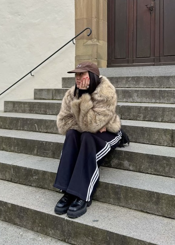 Как мех и спорт неожиданно стали самой обсуждаемой парой этой зимы — и почему этот образ уже вышел далеко за пределы Северной Европы. Этой зимой модные ориентиры все чаще приходят не с подиумов, а с улиц. И если присмотреться к лентам соцсетей или стритстайл-снимкам из Копенгагена, Осло или Стокгольма, можно заметить одну устойчивую формулу: меховая шуба плюс спортивные штаны Adidas. Так выглядит новая эстетика North Europe girl — расслабленная, ироничная и при этом очень продуманная. Северные девчонки взяли привычный зимний элемент — меховую шубу — и полностью «заземлили» его, добавив спортивные штаны. Без попыток выглядеть нарочито модно или слишком аккуратно. В таком комплекте можно ходить всю зиму: гулять, ездить по делам, встречаться с друзьями и не отказывать себе в комфорте. Чтобы образы не выглядели одинаково, они просто играют с деталями — меняют цвет шубы, брюк и аксессуаров. Так простой прием превратился в массовый тренд. Подходят абсолютно любые оттенки: Здесь нет строгих п