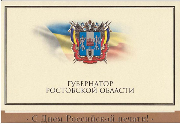 – Поздравляю коллектив редакции с Днем российской печати! Время подтвердило: сила печатного и цифрового слова возросла. Сегодня вы – ключевые партнеры в большом важном деле развития Ростовской области. Для меня, как губернатора, репортажи, аналитические выводы, вопросы журналистов – это обратная связь и ценный источник информации для принятия решений. Жителям области ваши публикации помогают быть в курсе изменений, понимать смысл и видеть перспективы, – говорится в поздравлении. Юрий Слюсарь поблагодарил журналистов «Шахтинских известий» за внимание и интерес к жизни донского региона, за вклад в создание объективного информационного поля и пожелал здоровья, счастья, вдохновения, интересных тем и ярких публикаций.