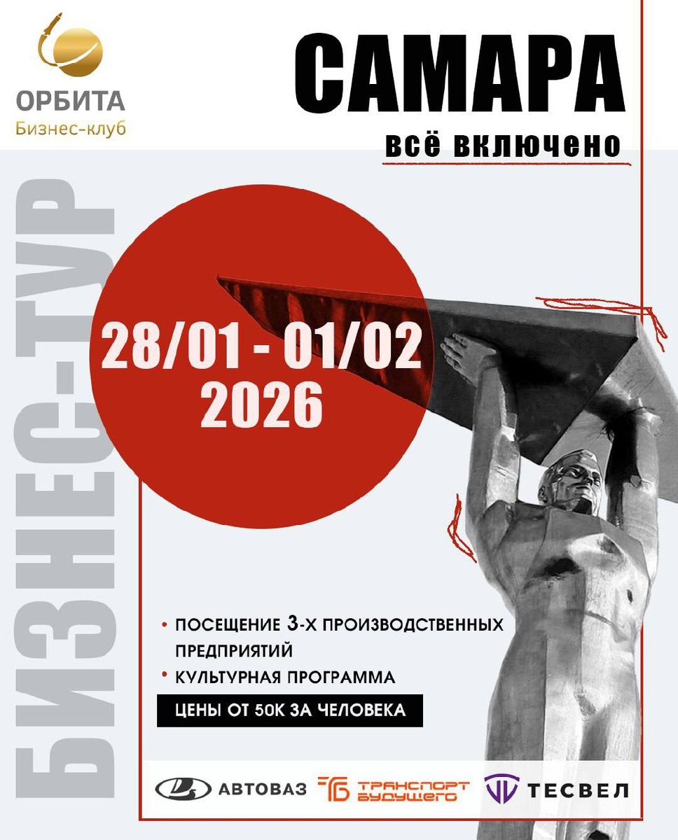 В программе: 🖌️Автоконцерн «АвтоВАЗ» – крупнейший производитель легковых автомобилей в России г. Тольятти. -Посетим прессовое производство, -производство сварки и линию сборки. 🖌️Компания «Транспорт будущего» – разработчик и производитель беспилотных авиационных систем. г. Тольятти -Просмотрим как построено производство беспилотных летательных аппаратов. -Узнаем как идет подготовка кадров в инженерной школе на базе предприятия и тд 🖌️Компания «Тесвел» – производственно-инжиниринговая компания, входящая в ГК «Волгаэнергопром». г. Самара -Мы посетим выставочный зал -посмотрим коллаборативные роботы, и у каждого будет возможность поуправлять роботами. Также нас ждет 2 встречи с Самарскими предпринимателями (30 и 31 января). Что вы получите от поездки? ✅ Знакомство с передовыми производствами и современными технологиями. ✅ Ценный нетворкинг с предпринимателями из разных сфер. ✅ Новые идеи для развития вашего бизнеса, основанные на чужом опыте. ✅ Возможность найти партнеров, пос