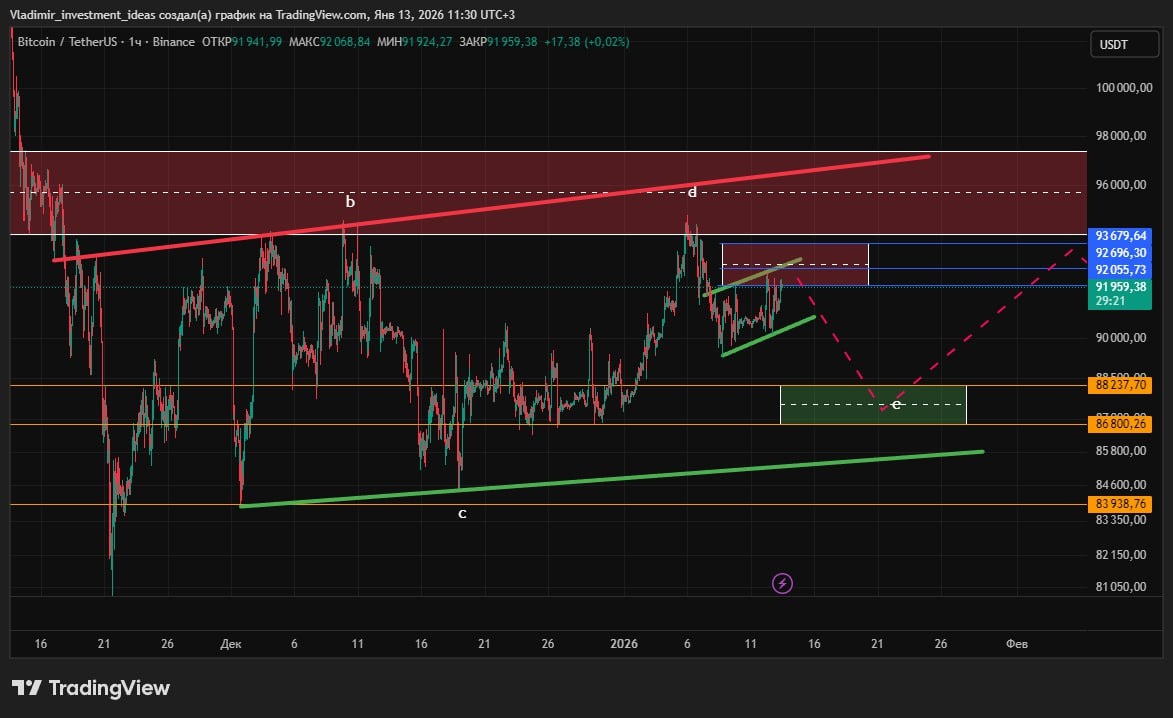 Блок который вверху с синими линиями, это уровни фибы от которого может быть реакция, выше блок находится сильного сопротивления, если его пробьем то и пойдем выше. Но даже если коррекция и будет в область 88237-86800 то настроен все равно лонгово. Сегодня новости в 16:30, волатильность будет. Просто этот вариант надо учитывать, соблюдайте риски. Обнял.