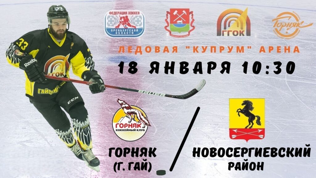 18 января в Гае состоится домашний матч хоккейного клуба «Горняк» (0+). На льду арены «Купрум» местная команда встретится с хоккеистами из Новосергиевского района. Игра пройдет в рамках Чемпионата Оренбургской области по хоккею с шайбой среди мужских команд в сезоне 2025-2026. Матч начнется в воскресенье в 10:30. Организаторы приглашают всех болельщиков и любителей хоккея поддержать команду «Горняк».