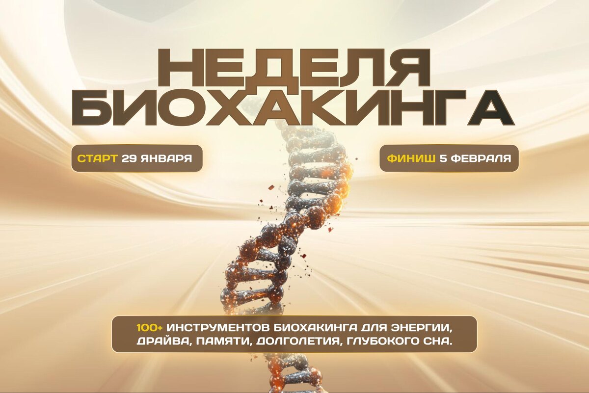 🗓29 января - 5 февраля 100+ инструментов для энергии, гиперфокуса, памяти, долголетия и глубокого сна Если: - просыпаешься уже уставшим - живёшь на кофе и “дожимании на силе воли” - ловишь провалы энергии днём - головой хочешь больше, а тело не тянет - ложишься вовремя, но мозг не выключается Тогда тебе сюда. Это не “мотивация на неделю”. Это биохакерская перезагрузка: простые действия, которые дают ощутимый эффект уже в процессе. Что будет за 7 дней Ты выстроишь систему, где: 🌀 энергия стабильная, 🌀 голова ясная, 🌀 сон глубокий, а привычки держатся не на дисциплине, а на физиологии. Формат ✅ Онлайн в Telegram-группе ✅ 3 больших эфира + запись ✅ Чек-листы / гайды / протоколы ✅ Вопросы и ответы в группе 3 ключевых эфира ЭФИР 1 — ЭНЕРГИЯ Твоя цель - перестать быть заложником “кофе-сахар-кофе” и собрать ровный уровень сил. Внутри: 35 инструментов по метаболизму, воспалению, гормональной синхронизации и работе митохондрий. Результат: - энергия с утра до вечера - без провалов