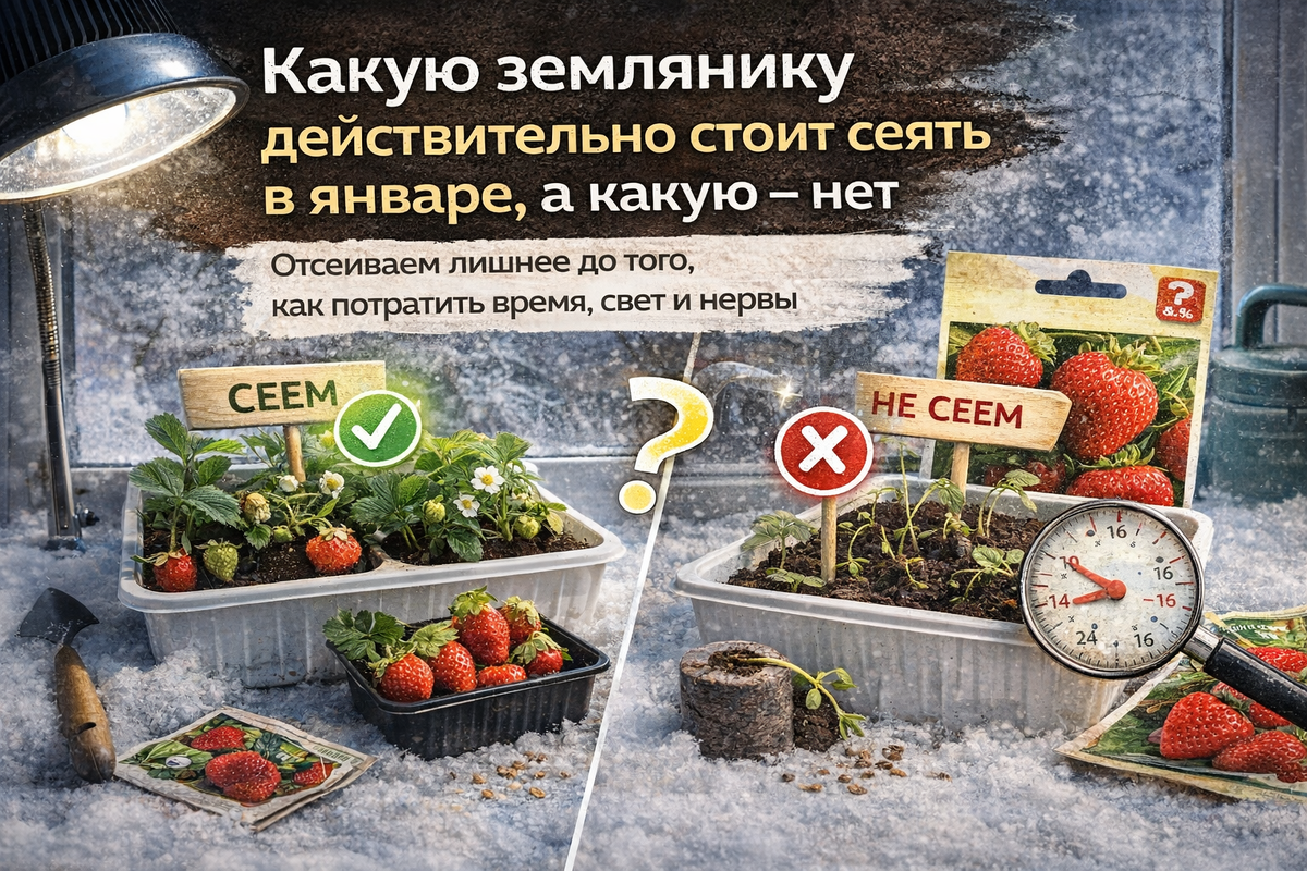 какую землянику реально имеет смысл сеять в январе, а какую — нет.