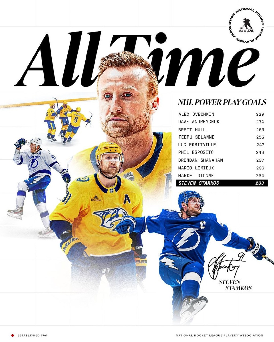 🐅 Стивен Стэмкос вошёл в ТОП-10 всех времён по голам в большинстве