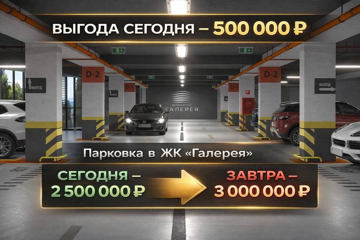 😱 Сегодня — финальный день, когда парковочное место в ЖК «Галерея» можно забронировать за 2 500 000 ₽. С завтрашнего дня стоимость парковочного места составит 3 000 000 ₽ Выгода сегодня — 500 000 ₽ Парковка в «Галерее» — это не просто удобство, а: • комфорт без ежедневного поиска места, • сохранность автомобиля, • дополнительная ликвидность и рост ценности квартиры. Логика простая: • бронируя сегодня, вы фиксируете цену, • откладывая решение, завтра платите больше. Если вы планировали парковочное место - сейчас наилучший момент! Звоните, бронируйте, связывайтесь с отделом продаж сегодня! 📞 +7 978 183 10 10 Или смотрите на сайте 🖥