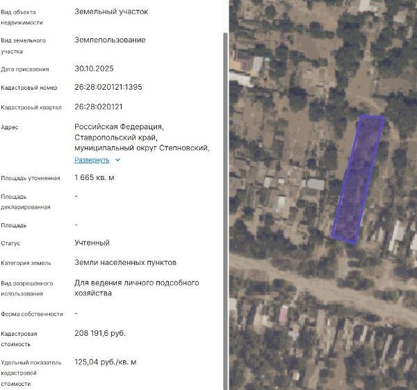 Название: Земельный участок с кадастровым номером 26:28:020121:1395 площадь 1665 по адресу Российская Федерация, Ставропольский край