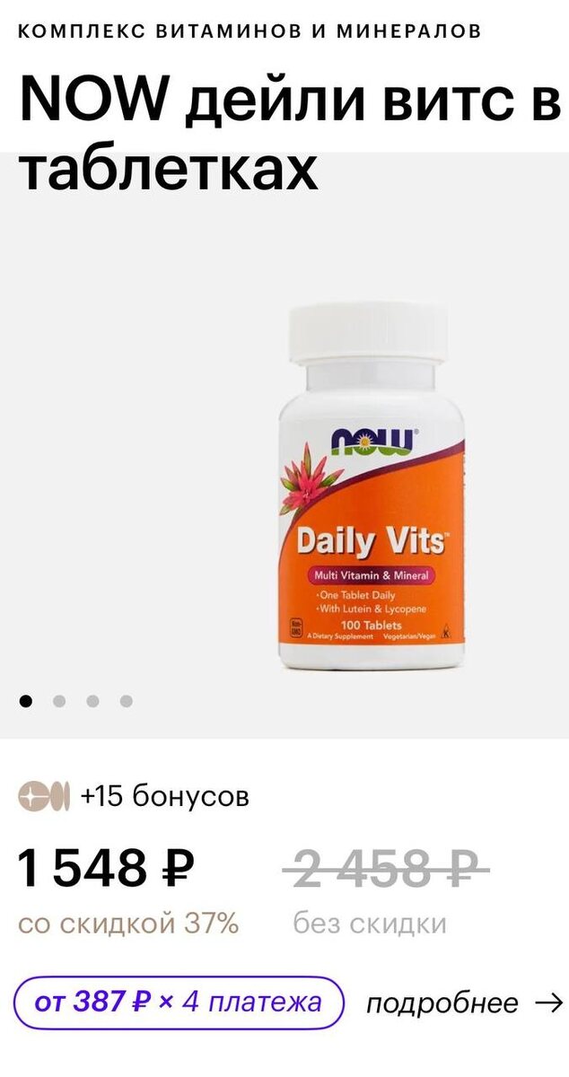 Но я люблю считать деньги 🌚 Предыстория: Предпочитаю не экспериментировать с качеством в витаминах, поэтому покупаю на зарубежном сайте. Оттуда едет месяц-полтора, а витамины в синей банке мне надо прямщас. Такие в России или подделки с озона и вб, или цена в два раза выше. Мои поиски привели к другому, не менее ценному бренду NOW, который также производит высокое качество БАДов уже лет 50. Комплекс имеет адекватные дозировки, которые способны работать с дефицитами более 80% жителей нашей страны в дефиците не только потому, что солнца нет. А еще и потому, что официальные нормы витаминов пробивают дно показателей. Попробуйте прийти по ОМС и сказать, что у вас низкий Д, вам пропишут капли в 200уе, тогда как норма для вас может быть не менее 2000 или даже 10000/день. Тоже самое с остальными важными витаминами и минералами. Пока меня не унесло как бабку на лавке 👵 Вот ссылка на комплекс, который к моему удивлению в ЗЯ оказался по хорошей цене. Не понимаю их логику в ценах, но покупка