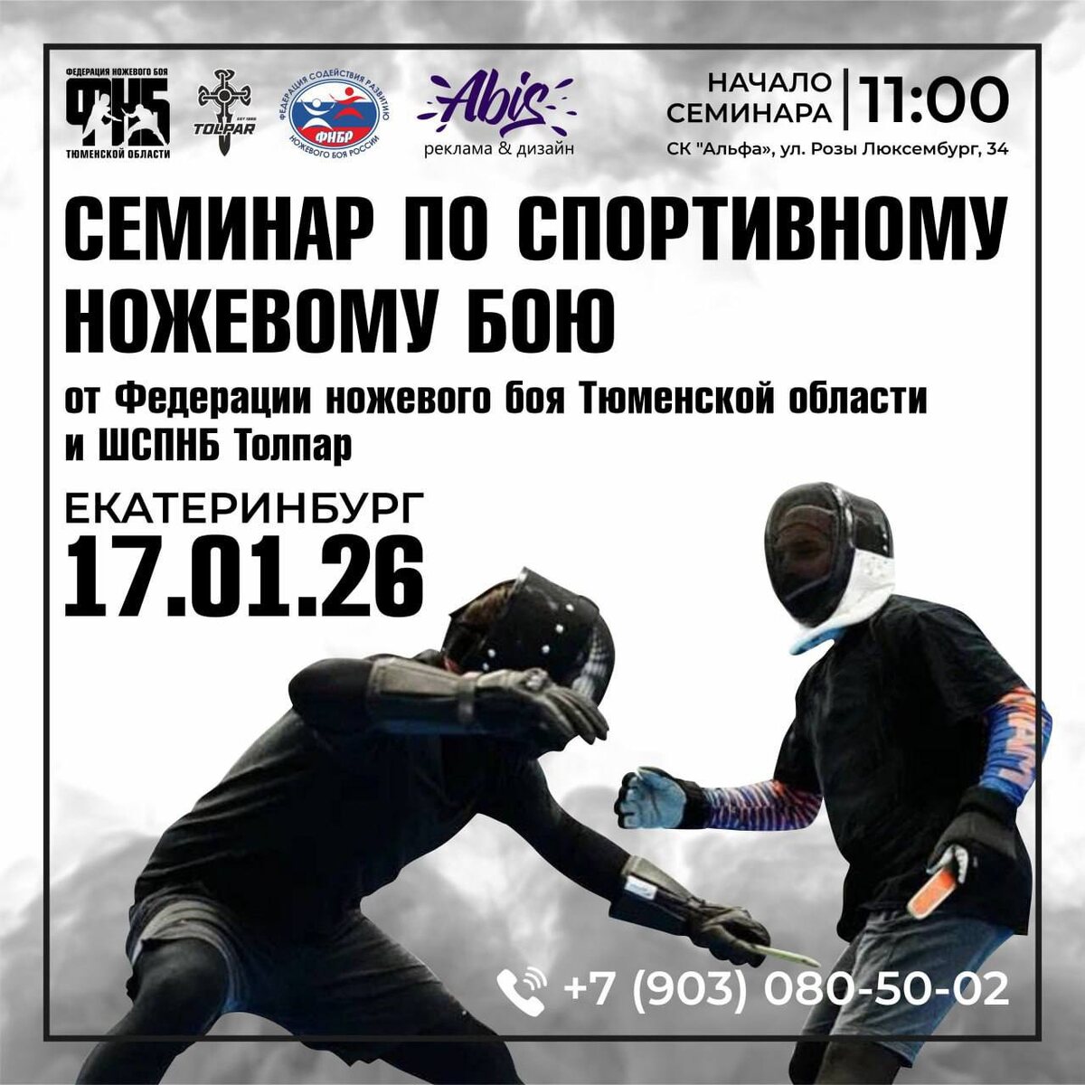 ⚔️ 17 ЯНВАРЯ | ЕКАТЕРИНБУРГ | ВВОДНЫЙ СЕМИНАР ПО СПОРТИВНОМУ НОЖЕВОМУ БОЮ Ты чувствуешь зов настоящего спорта, где нужны скорость, тактика и интеллект, тогда пришло время познакомиться с СНБ — спортивным ножевым боем! НА СЕМИНАРЕ ТЫ ПОЛУЧИШЬ: ✅ БАЗУ СНБ: Техники, тактику и философию современного ножевого боя. ✅ КОМАНДНУЮ РАБОТУ: Уникальные знания о роли и работе секунданта. ✅ ПРАВИЛА И ТЕХНОЛОГИИ: Все о соревнованиях и работе на электронной системе «СПОРТ-НОЖ». 🔥ВЕДУЩИЙ СЕМИНАРА — АНТОН БУЗОЛИН: ▪️ Президент Федерации ножевого боя Тюменской области ▪️ Двукратный вице-чемпион Европы по СНБ ▪️ Мастер спорта РФ по боксу ▪️ Инструктор школы «Толпар» 📌 ДЕТАЛИ: 📅 Дата: 17 января 2026 (суббота) ⏰ Время: 11:00 📍 Адрес: Екатеринбург, ул. Розы Люксембург, 34, СК «Альфа». ⚠️ ВАЖНО! Количество мест для качественного обучения СИЛЬНО ОГРАНИЧЕНО! ➡️ УСПЕЙ ЗАРЕГИСТРИРОВАТЬСЯ: 📞 +7 (903) 080-50-02 🗡 ИСКУССТВО НОЖЕВОГО БОЯ🗡 #НожевойБой #СНБ #СеминарЕкатеринбург #БоевыеИскусства #Спорт
