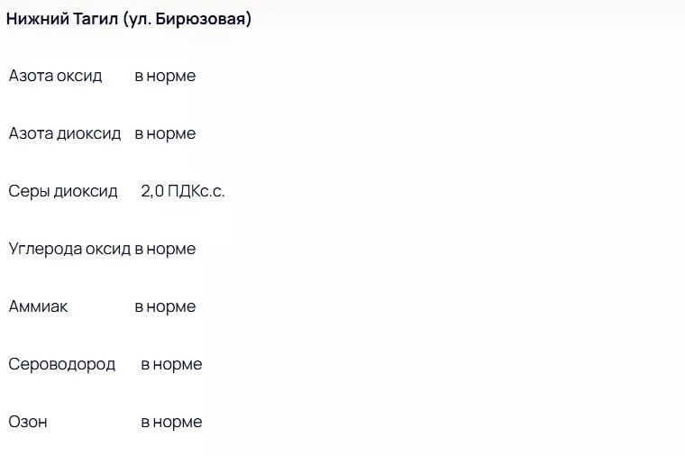 По данным Министерства природных ресурсов и экологии Свердловской области, в тагильском воздухе был обнаружен диоксид серы равный 2,0 ПДК.