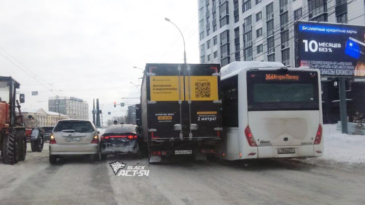 Днём 13 января перед площадью Сибиряков-Гвардейцев произошло ДТП с участием минивэна Honda Odyssey, седана Kia Rio, ГАЗели и автобуса №264. По словам очевидца, аварию спровоцировал водитель Kia Rio, который не смог проскочить между двумя транспортными средствами. Объехать участников ДТП можно только через трамвайные пути, сообщает телеграм-канал АСТ-54 Black.