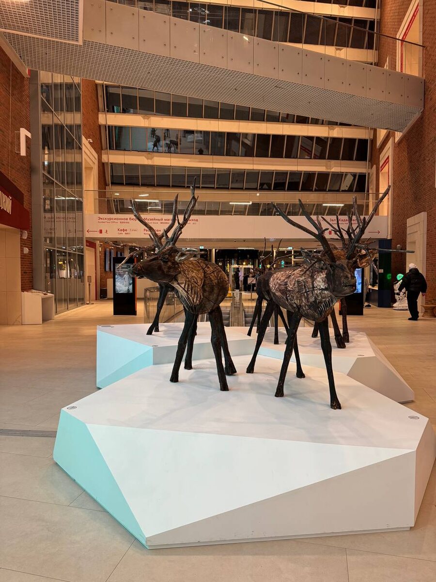 Полюс цвета», проходящая сейчас в Третьяковской галерее на Кадашевской набережной, посвящена 500-летию освоения Россией Северного морского пути. Купила билет случайно, изучив буклет к выставке. Но когда зашла в пространство музея, то реакция была такая - ах! Расскажу в общих чертах, чтобы для тех, кто захочет её посетить, не пропал эффект неожиданности от созерцания художественного осмысления северных широт в русском искусстве. Впечатлило разнообразие представленных техник и жанров: от костяных икон, живописи, скульптуры, фотографии до мультимедийных инсталляций. Во-первых, думала, что работа с пространством на выставке Марка Шагала в Пушкинском музее за гранью воображения, но нет. На «Арктике» вы попадаете совершенно в иное непривычное измерение. Гениальное решение кураторов представить экспозицию в виде расколовшегося льда, будто вы идете на ледоколе и видите за бортом белых медведей, китов, пингвинов, природу в целом, местных жителей и т.д. Выставку сопровождают визуальные, оптиче