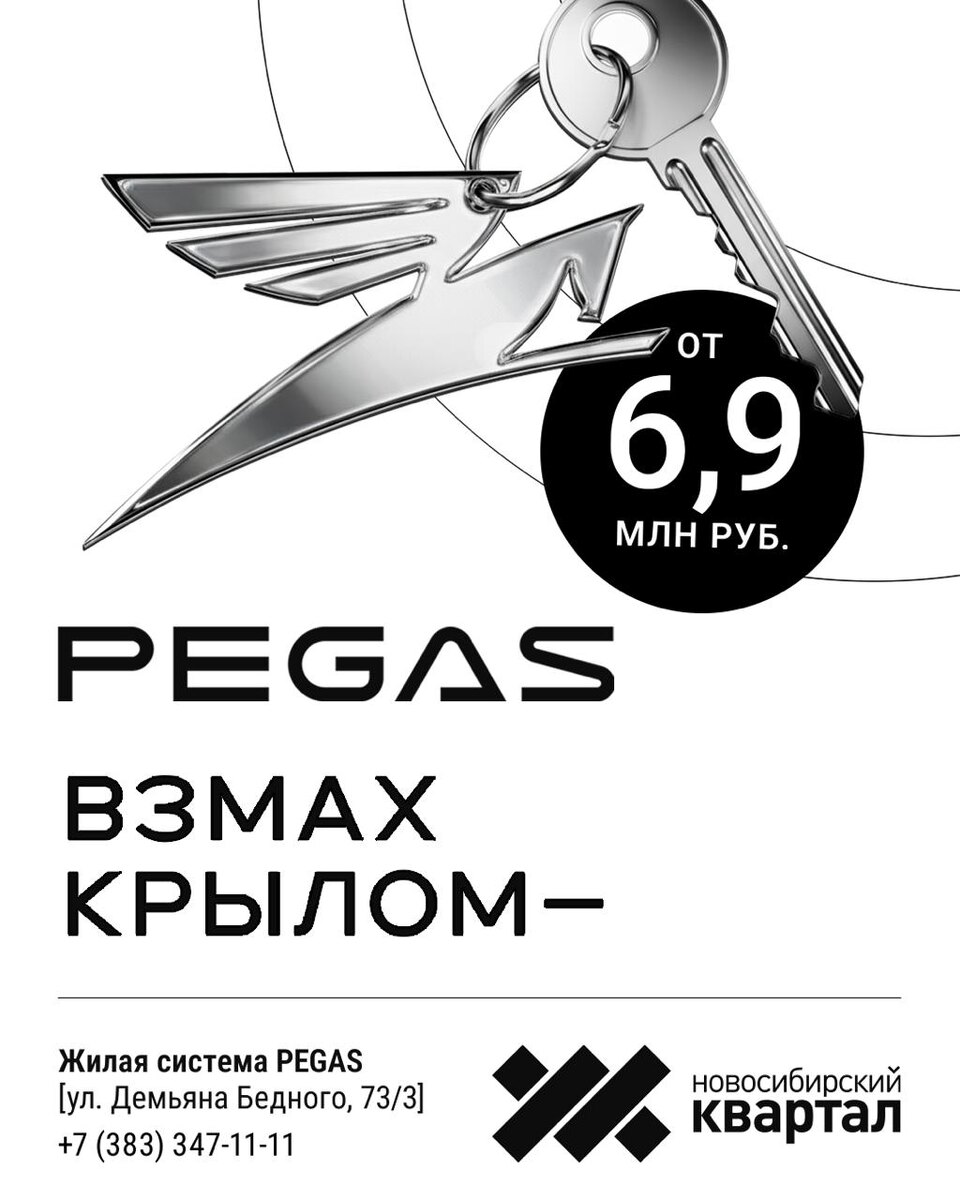 … И оказаться в собственном пространстве, где свет, воздух и свобода. Жилой комплекс «PEGAS» делает мечту о квартире достижимой. Это не просто покупка — это взлёт к новому качеству жизни. Стартовая цена — от 6,9 млн рублей. Ваш полёт начинается здесь. PEGAS. Взлетайте выше. Строим город, в котором хочется жить! Наш сайт: www.nsk-kvartal.ru