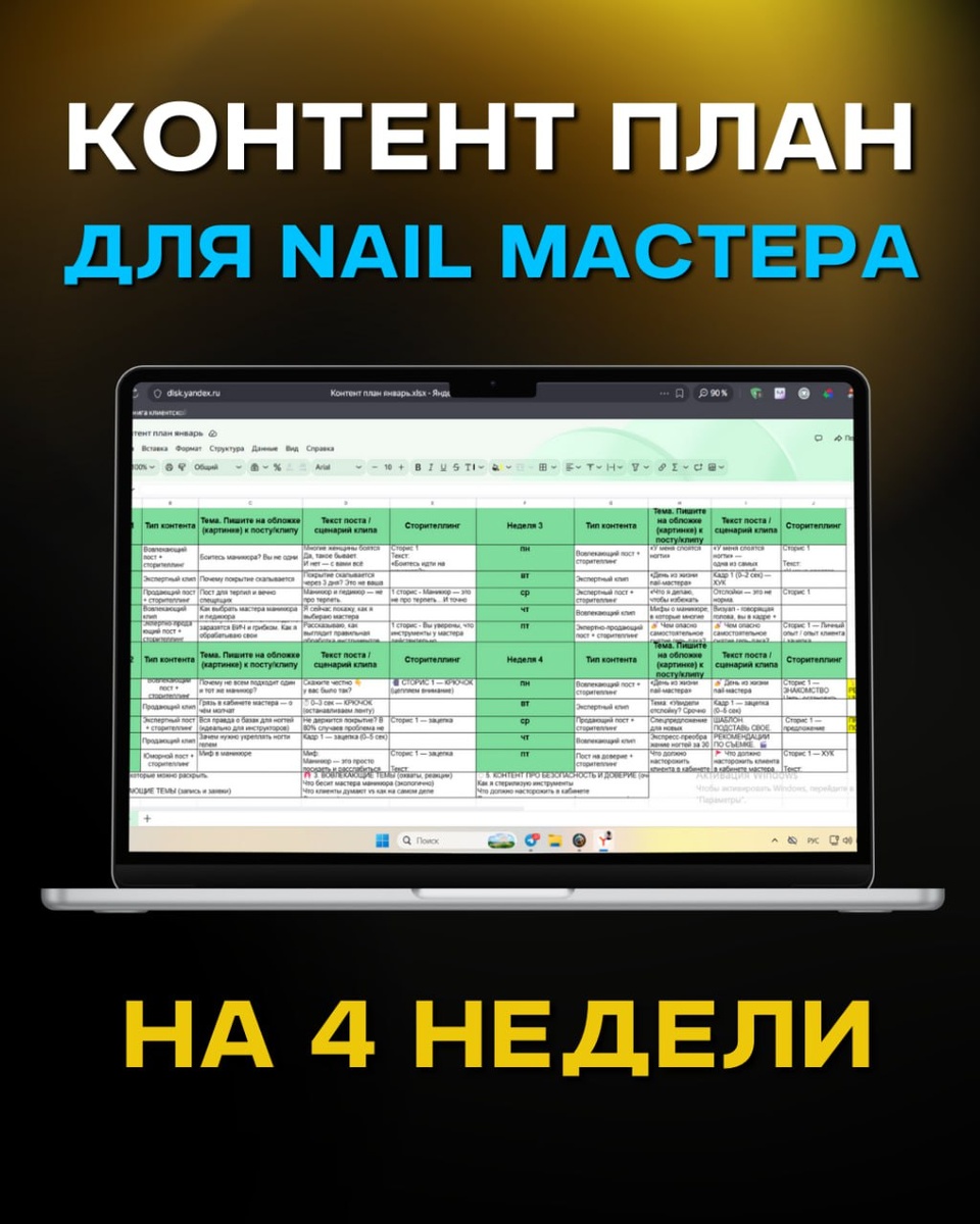 Хотите публиковать интересный контент без стресса и потери времени, привлекать клиентов и повышать продажи? У меня есть решение! Я подготовила готовый контент-план на 4 недели, специально для Nail мастеров: 💅 Что вы получите: 12 готовых постов и 12 готовых сторителлингов (по пн, ср и пт) 8 сценариев для коротких видео рилс/клипов (по вт и чт) Тексты, которые вовлекают и продают Подсказки для визуала и монтажа Идеи для сторис, рилс и постов в Instagram / ВКонтакте 💰 Стоимость: всего 990 ₽ — это как 2 чашки кофе или одно блюдо в ресторане. Но эффект от контента куда больше! Он окупится уже с первого клиента, которого привлечёт ваш контент. ✨ Преимущества: Экономия времени — больше не нужно ломать голову над идеями Продвижение услуг без лишней суеты Рост вовлечённости и продаж через соцсети Не тратьте недели на придумывание постов — возьмите готовый план и сразу начинайте получать результат! 📩 Закажите контент-план прямо сейчас и забудьте про «что писать в соцсетях»! Пишите мне