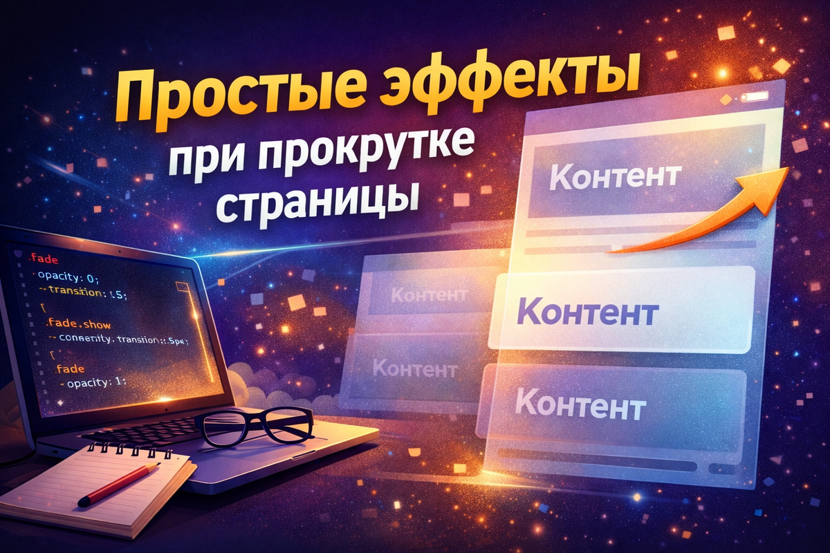 для этого не нужны сложные библиотеки, а базового JavaScript и CSS вполне достаточно. В этой статье разберём: Статья подойдёт, если ты новичок и только начинаешь разбираться в вебе. Когда пользователь заходит на сайт и видит: — внимание быстро теряется. Эффекты при прокрутке помогают: Даже минимальная анимация уже улучшает восприятие. Идея всегда одна: 1️⃣ элемент сначала скрыт