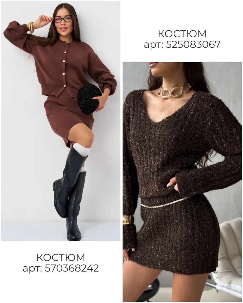 Главный секрет трикотажного комплекта — он уже является готовым образом. Вам остаётся только выбрать настроение: шоколад для тёплой элегантности, розовый для нежности, серый для статусной базы, молочный для «тихой роскоши».