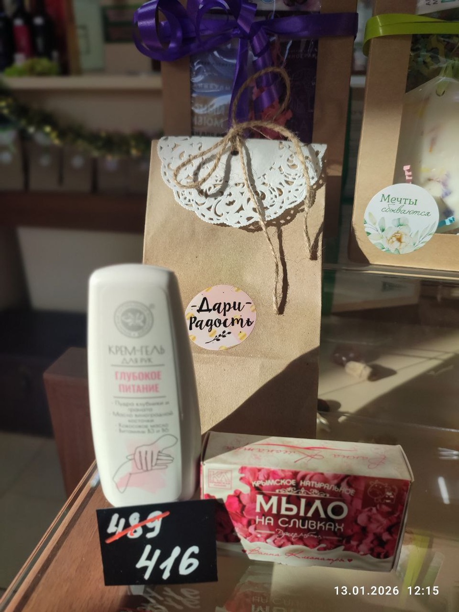 ! Мы закупили для Вас новую партию крафтовых пакетов. Бережно упаковали в них продукцию. Душевно оформили. Зимний уход за кожей рук и кусочек душистого мыла - себе для настроения и близкому человеку с заботой. Напоминаем: только до 19.01.2026 - ОСОБОЕ ПРЕДЛОЖЕНИЕ на все-все-все подарочные наборы в наших магазинах!!! Оформление наборов - в подарок! ПОКУПАЙ НАШЕ - ПОКУПАЙ ЛУЧШЕЕ!!! ⏰ Ждём вас ежедневно с 10:00 до 20:00 по адресам: 🛍улица Адмирала Октябрьского, д. 1 📱 +7 (978) 832-92-07. 🛍 проспект Героев Сталинграда, д. 67 📱+7 (978) 258-05-22.