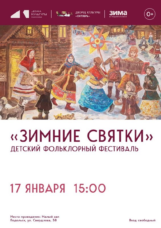 ✨ Фольклорный детский фестиваль «Зимние святки» 🎄Фестиваль зимних Святок представит зрителям атмосферу русского Рождества и Нового года: праздничная программа включает вертепное представление о кончине царя Ирода и концерт. На сцене зрители увидят обрядовые песни (колядки, христославки), народные игры («ведение» животных, медвежья потеха) и гадания по мотивам народных традиций. 🌟Завершит праздник веселая вечерка с танцевальными конкурсами, частушками и народными играми. 🚫 Возраст: 0+ 📆 17.01.2026 🕒 15:00 🏢 Дворец культуры «Октябрь» 📍 г. Подольск, ул. Свердлова, д.38 💰 Вход свободный❗️ ⭐Поддержать канал голосом 🍰Где поесть в Подольске ✅ Мероприятия Подольск https://dzen.ru/id/66ed500f7b5671493eca3fd6 http://vk.com/podolsk_events http://dzen.ru/podolsk_events
