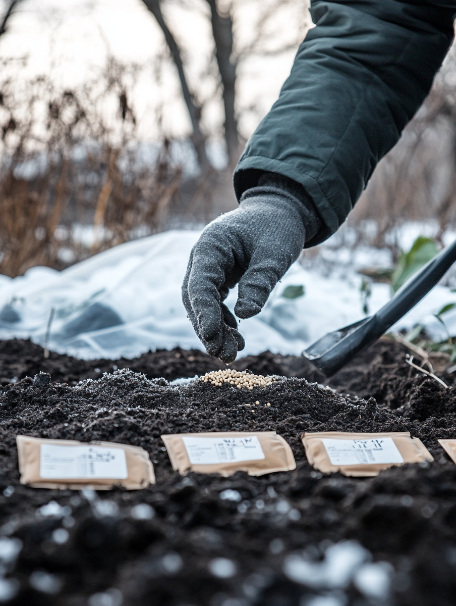 Ранние зимние посевы под снег и в теплицах. Для некоторых культур можно использовать зимний посев под снегом или в холодном рампе. Это естественная стратификация: семена лежат в холоде под слоем снега и постепенно прорастают при таянии весной.