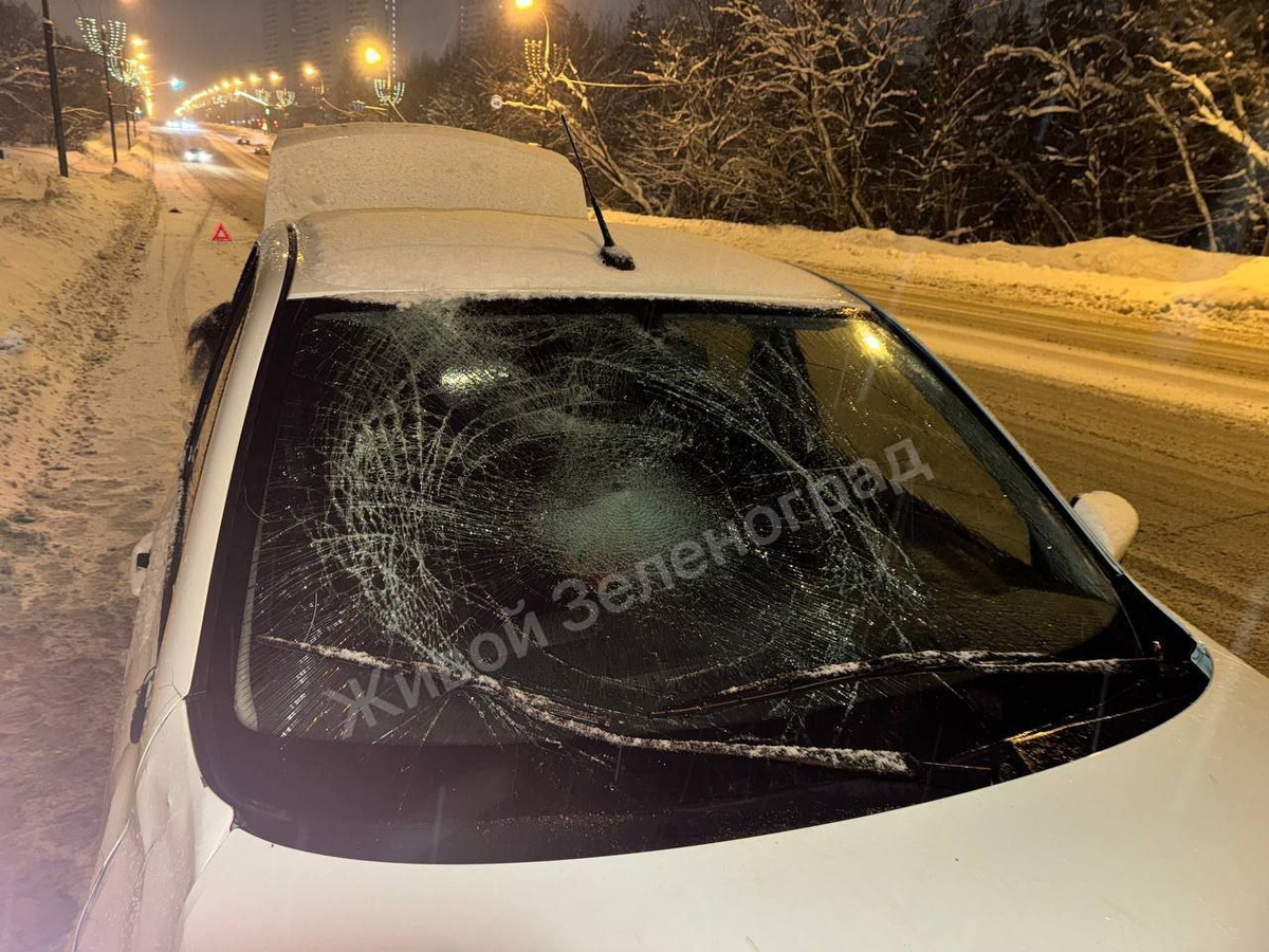 Этой ночью в Зеленограде, у Школьного озера, лось влетел в автомобиль!