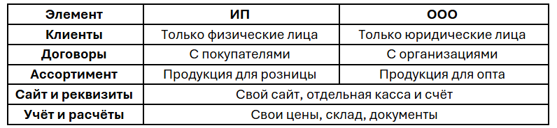 Сегодня мы разберём интересный кейс от дежурного юриста на одну из самых актуальных тем — риск дробления. У нашего участника следующая ситуация: ведёт розницу как ИП, а под опт регистрирует ООО. Ассортимент похожий, бренд один, логотип оформлен на владельца как на физлицо. Команда и подрядчики общие, реклама одна на всех. Да, так проще управлять потоками, разделять клиентов и налоги. Вот только для ФНС такая схема выглядит как искусственное дробление ради экономии на налогах. Риск — доначисления, пени, переквалификация операций и претензии к руководителю и признание схемы «дроблением бизнеса» (ст. 6 Закона №176-ФЗ от 12.07.2024). Посмотрим, где проходит граница между разумной структурой и дроблением, на что инспекция смотрит в первую очередь и как показать, что у участника два самостоятельных бизнеса, а не один, разложенный на части. Вопросы Предлагаем пошаговый план, с которым можно свериться, если вы уже ведёте бизнес через ИП и ООО под одним брендом или только планируете перейти к