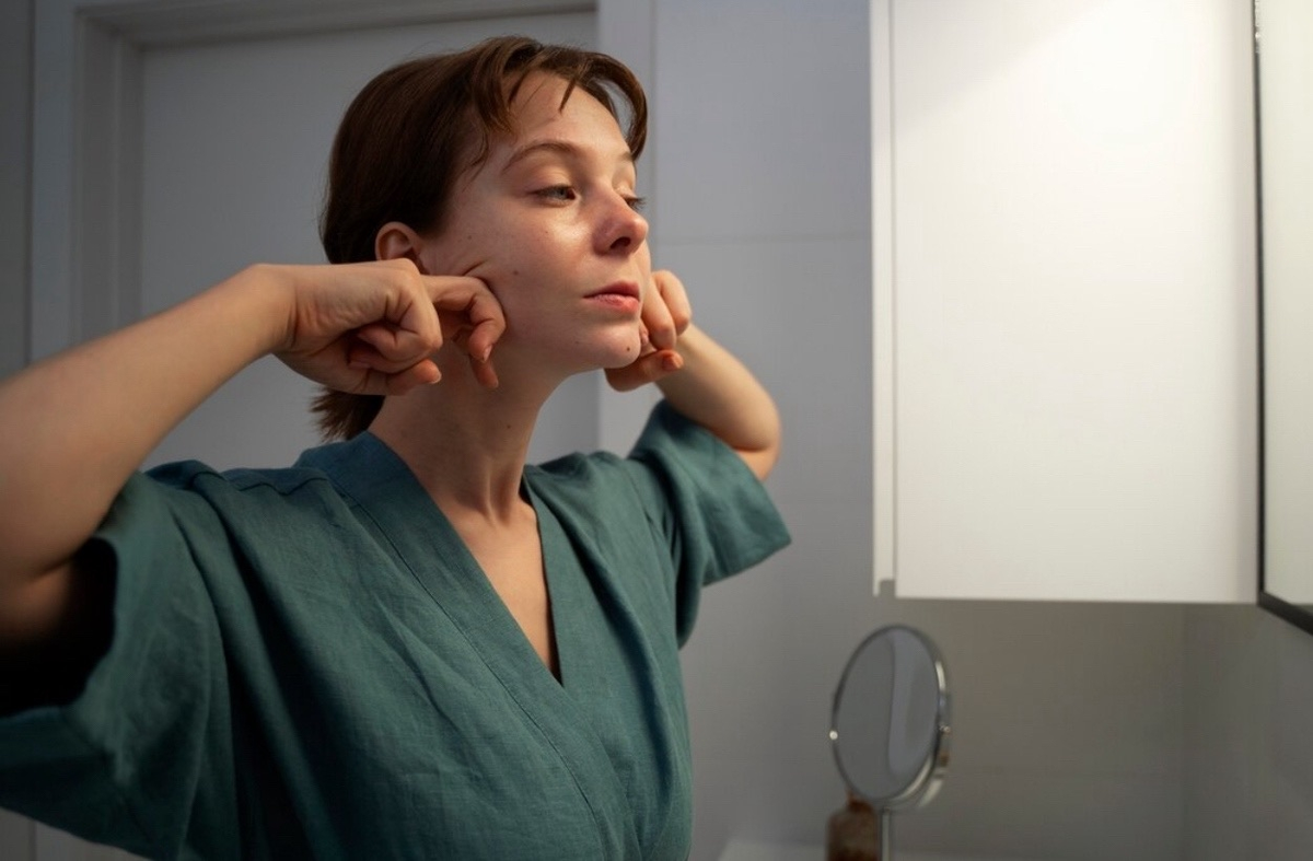 Мягкие похлопывания и лёгкое поглаживание лица руками или специальным массажным роликом п