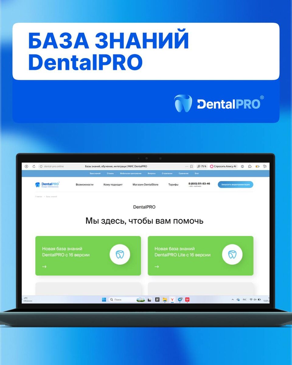 ? 🦷 Не беда! Ведь мы уже позаботились о вас, создав обширную базу знаний (БЗ). Она доступна для всех желающих по этой ссылке ⛓️💥 Что даёт БЗ: ⚙️ Исчерпывающее описание функций DentalPRO ⚙️ Информацию об актуальных обновлениях системы ⚙️ Ответы на вопросы, которые могут возникнуть в ходе использования DentalPRO Практика показывает, что база знаний покрывает все типовые запросы. Если же вы по какой-то причине не нашли ответ на интересующий вас вопрос, есть выход 👌 🦷 К вашим услугам наша команда специалистов — в чате с клиникой, на горячей линии техподдержки и на контакте в системе.