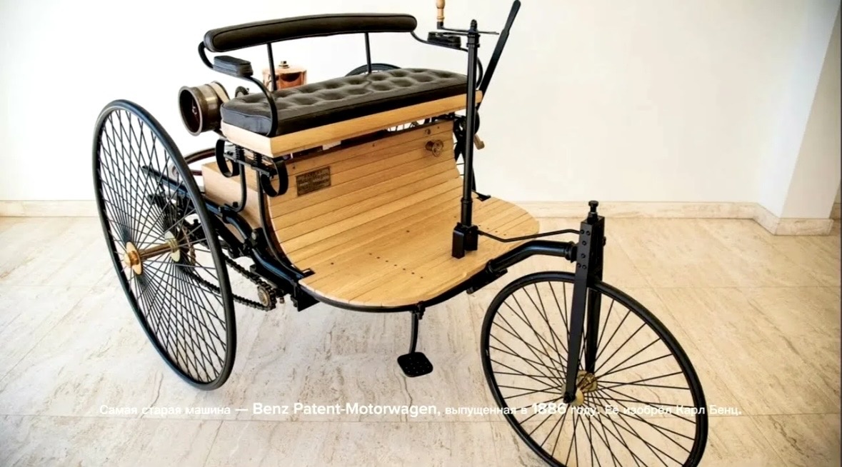 История автомобиля началась в конце XIXвека. В 1886 году Карл Бенц запатентовалпервый автомобиль с бензиновымдвигателем — Benz Patent-Motorwagen. Этотрёхколёсное транспортное средстворазвивало скорость до 16 км/ч и сталоотправной точкой в развитии автомобильнойиндустрии.