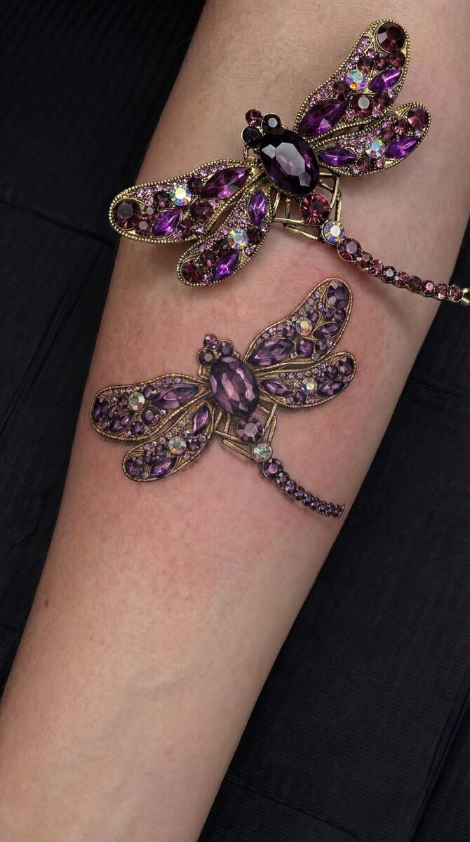Твори, изучай новое, пробуй, ошибайся, кайфуй! В какой-то момент я поняла -я не просто делаю татуировки. Я создаю украшения. На коже. Вживую. Навсегда. Вот она -моя стрекоза, вся усыпанная драгоценными камнями, сияющая как брошь от Тиффани 💎 Когда-то я смотрела на ювелирные изделия с восхищением и трепетом. Казалось -это не про меня. А теперь -посмотрите, что может сделать одна игла, пара оттенков фиолетового и страсть к деталям ✨ Это не просто татуировка в стиле 3D реализм. Это ювелирка, только не из золота, а из пигмента и терпения. 📍 Сделано в нашей студии на Коллонтай, 31 к2 -в самом сердце Невского района, где сбываются идеи, превращаются в эскизы, а потом -в искусство. Ты тоже можешь больше, чем думаешь. А если хочешь что-то уникальное -пиши, обсудим идею, воплотим на коже так, как не сделает больше никто. P.S. Я и сама в шоке от результата 🙈 #татуировкаспб #татустрекоза #тату3д #реализмтату #ювелирнаятату #татустудияспб #татуневскийрайон #tattoospb #microrealismtattoo #tattoo