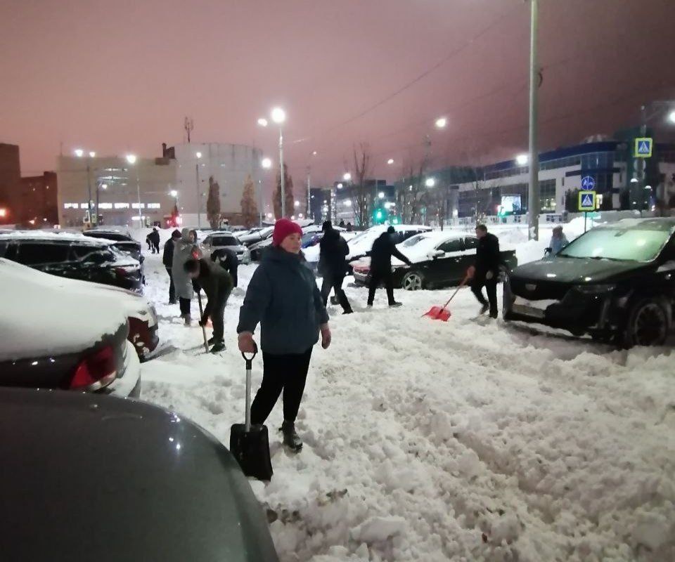 😍 От подписчицы: 📍Мытищи, Астрахова 2. Соседи устали ждать помощи от коммунальщиков и УК Новое Медведково (с их новым руководством) скооперировались, сами закупили лопаты и расчистили парковку своим силами.