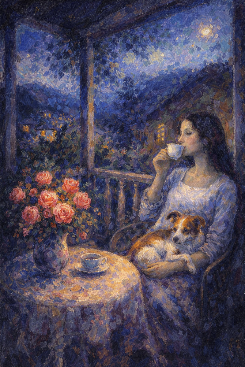 Цветы так недолговечны, поэтому с помощью картин, фотографий, фильмов мы можем любоваться ими в любой момент своей жизни. А темы природы и цветов вообще одни из самых популярных. Я, к сожалению, не умею рисовать. Но сейчас у меня появилась возможность создавать картины с помощью нейросетей. Я создавала в голове образы, описывала настроение и детали, а технология помогла собрать их в единый облик. 1. Я назвала эту картину "Тихий вечер". Уютная атмосфера, розы, любимая собака... 2. Картина в более современном стиле. Мне очень нравится сочетание красных гербер и веток сосны, делала такие букеты у себя дома, а почему бы не воплотить их и в картине. Называется "Зима-лето". 3. Эта картина в стиле Моне, но с бабушкиными геранями на окошке. Называется "Герань". 4. Очень жизнерадостная картина "Девочка и космеи". 5. Дань советским художникам, "Веранда в деревне". 6. Эту картину я придумала как символизирующую любовь. Называется "Тепло в Питере". 7. Картина называется "По полю с конем", но если