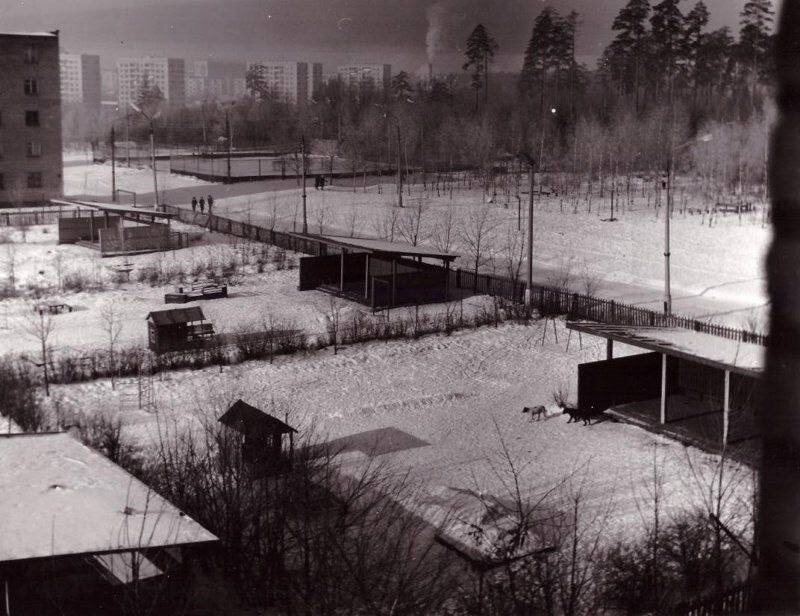 1971 год. Вид на детский сад "Лесная полянка" и "асфальтовый" корт по ул. Быковского.
