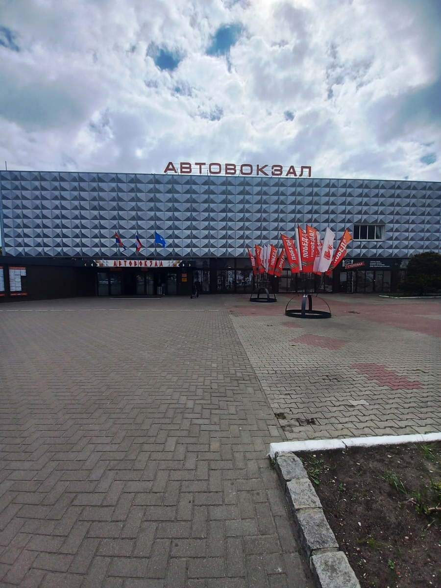И вот я в Гвардейске! Немного удивило, что город туристический, а автостанции как таковой в городе нет, хотя на картах она отмечена и даже маленькое здание 1959 года постройки имеется 🤔 Однако местные объяснили, что до недавнего времени она действительно работала, а сейчас остался скромный карман для остановки автобусов типа платформы. Через нее проходит множество автобусов до Калининграда и др. городов области: садишься в любой — и в путь! Никакого расписания, как вы понимаете, здесь не вывешено. Но местные жители расписание автобусов знают, как я понял, наизусть 😁