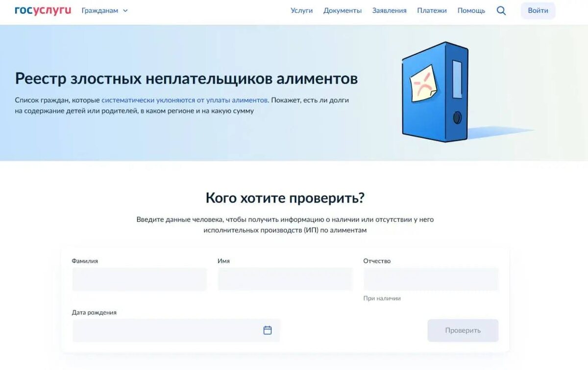 Реестр злостных неплательщиков алиментов заработал на портале «Госуслуг
