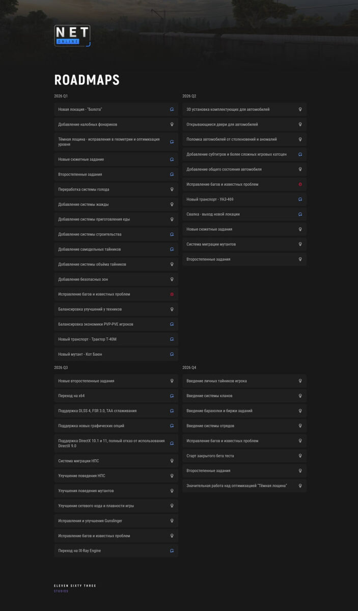 ☢️ Опубликованы планы на 2026 год по разработке многопользовательской модификации «NET Online