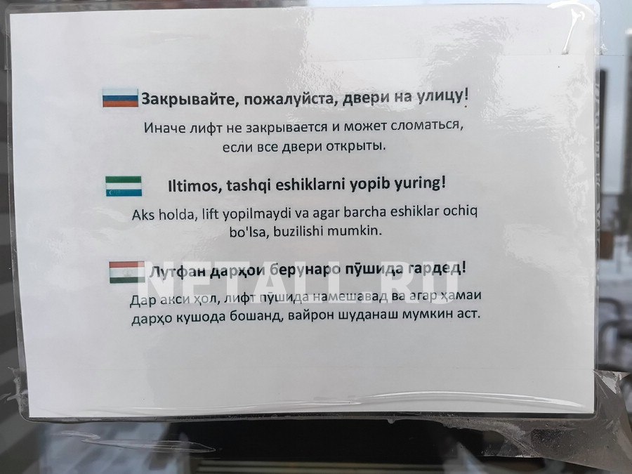 Глазами очевидцев: объявление на трех языках — русском, узбекском и таджикском — в подъезде одного из домов 22-го микрорайона