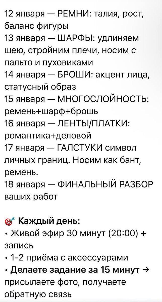 Программа с 12-18 января. Вы можете зайти в любой удобный день. После оплаты я пришлю