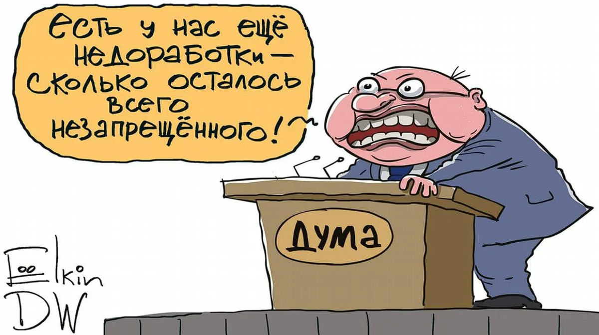 Может быть, видели забавный ролик, где депутат с трибуны кричит: «Запретить всё, запретить интернет, запретить личную переписку, запретить дышать, запретить говорить без разрешения»... А потом надувается и взрывается прямо в Думе.